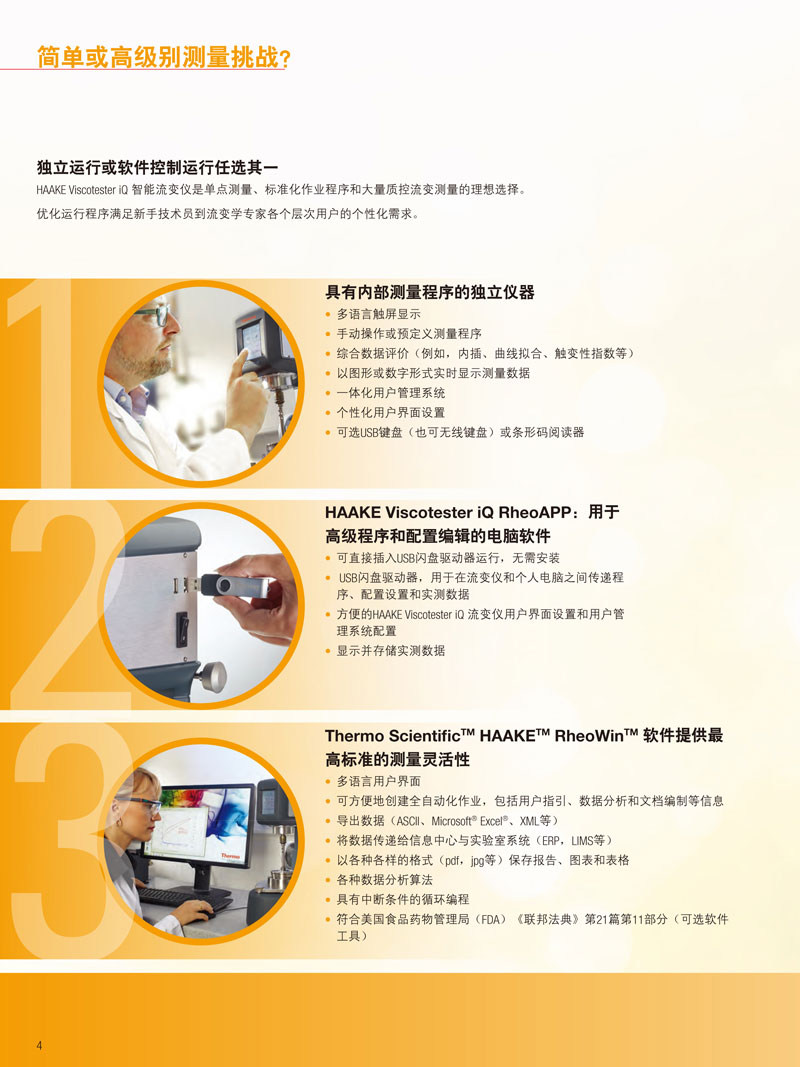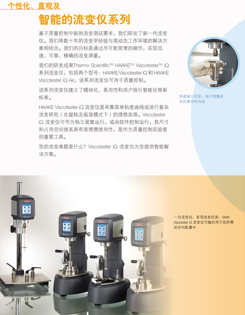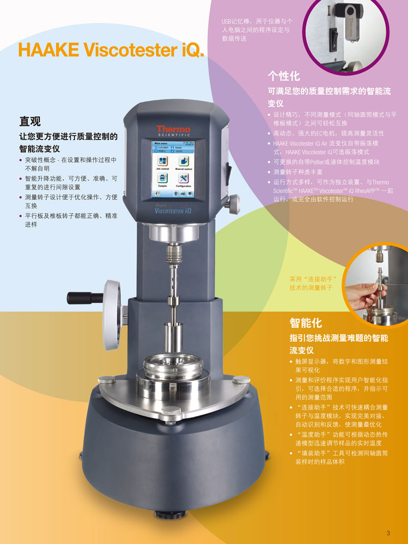 HAAKE Viscotester iQ 上裝有觸摸屏界面,可以作為獨(dú)立儀器使用,此外,可以通過安裝 USB 閃存驅(qū)動(dòng)器上獨(dú)特的賽默飛HAAKE Viscotester iQ RheoApp 軟件實(shí)現(xiàn)其擴(kuò)展功能。此外,儀器可以通過臺(tái)式計(jì)算機(jī)上的軟件完全控制運(yùn)行。儀器的“Temperature Assist”功能聯(lián)合 Peltier 溫度控制系統(tǒng),使用戶真實(shí)準(zhǔn)確地測(cè)量出樣品溫度,并減少測(cè)量時(shí)間。