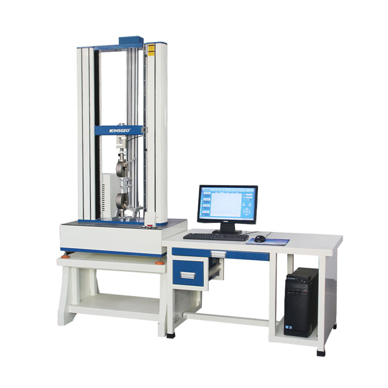 將試樣裝夾在中橫梁和底座之間的夾具上,中橫梁與底座相對運動,通過位于中橫梁上的力值傳感器和機器內(nèi)置的位移傳感器,采集到試驗過程中的力值變化和位移變化,從而得出試樣的各種力學(xué)性能指標(biāo)。